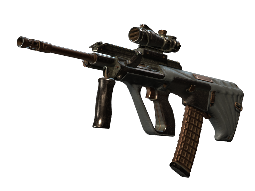 "Powerful and accurate, the AUG scoped assault rifle compensates for its long reload times with low spread and a high rate of fire. It has been custom painted to replicate the look and feel of a puffer jacket and finished with bronze accents.\n\n<i>The premium package</i>"