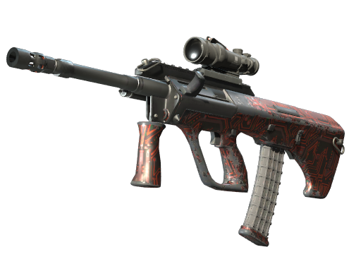 The Random Access finish on the AUG features a distinctive design that sets it apart in the CS2 cosmetic ecosystem. The official in-game description reads: