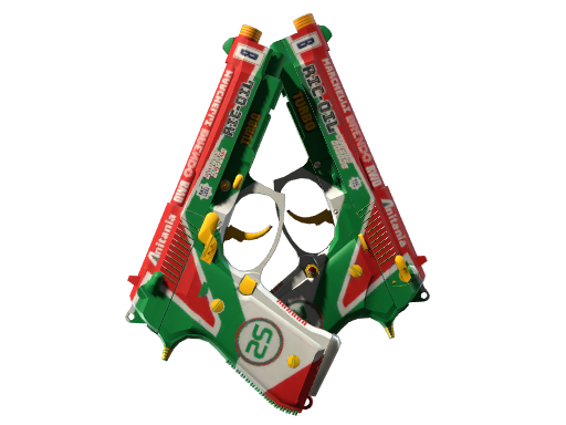 Souvenir Dual Berettas | Twin Turbo is an ultra-rare variant dropped exclusively during CS2 Major Championship tournaments. Souvenir skins feature unique gold-foil stickers commemorating the tournament, match, teams, and MVP player.