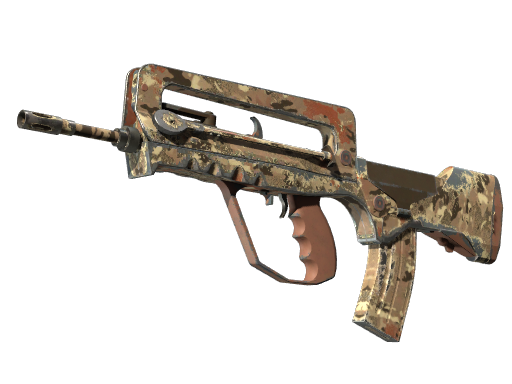 Souvenir FAMAS | CaliCamo is an ultra-rare variant dropped exclusively during CS2 Major Championship tournaments. Souvenir skins feature unique gold-foil stickers commemorating the tournament, match, teams, and MVP player.
