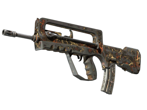 "A cheap option for cash-strapped players, the FAMAS effectively fills the niche between more expensive rifles and the less-effective SMGs. It has individual parts spray-painted khaki and grey."