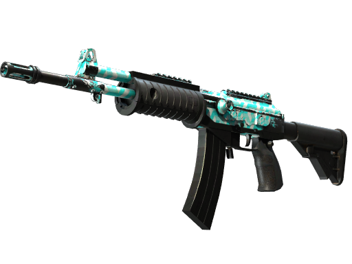 The Aqua Terrace finish on the Galil AR features a distinctive design that sets it apart in the CS2 cosmetic ecosystem. The official in-game description reads: