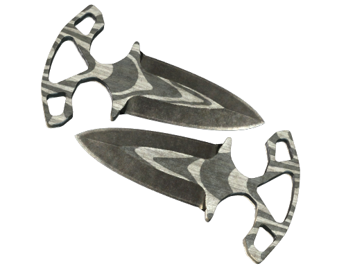 The Black Laminate finish on the Shadow Daggers features a distinctive design that sets it apart in the CS2 cosmetic ecosystem. The official in-game description reads: